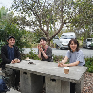 森歩きのあとは、乾燥所、Lazymanの刻印がある3キロ焙煎釜の見学やナチュラルプロセス、ウェットプロセスそれぞれの特徴などもお伺いし、さらに日本でコーヒー屋を営む2人がスウェさん焙煎のコーヒーをドリップして飲み比べをしたり。かと思えば、レイジーマンのスピリットにならい、ごろんと横になってお昼寝するメンバーも。ゆったりとした時間を過ごしました。このレイジーマンテラス2Fで民泊させていただいたメンバーもいたというから、うらやましいことです。