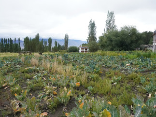 午後からはサブー村に移動し、村の見学と座談会が行われました。村の住人であり元役人のタシさんとアンチョクさんのお二人に案内頂きました。村の畑を見学(写真は赤い蕎麦を栽培している畑と、採れた蕎麦の実・乾燥あんず)したのち、アンチョクさん宅に移動しラダックの農業事情について説明を受け、農業用水が枯渇している事や、気候的に有機栽培が難しい事などを知りました。