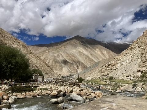 今日は朝から、別の村に住んでいる羊飼いのラドルちゃん(Tsering Ladol)に会いにいくということで、朝はいつもより早く起き、朝食を食べて7時半くらいにヴァンに乗り込み、みんなで出発しました。ヒマラヤの山々の間をどんどんと進んで行く、車窓からの景色は絶景すぎました!