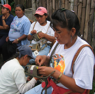女性たちにとってカブヤ編み製品づくりは、単なる経済的な収入以上の意味があります。残念ながら、インタグのような農村部においてはまだまだ男尊女卑の傾向が色濃く残っています。けれども、自分たちの収入がある=家庭内の出費の決定権をもつことができる。子どもたちの世話を担っている女性たちは、夫にお伺いを立てることなく、教育費や医療費、被服費にお金をかけることができるようになりました。それは子どもたちに教育を受ける機会を増やすと同時に女性たちに精神的な自立を促しました。夫たちも妻たちは自分のお世話係ではなく、仕事を持つ一個人であるという認識をするようになり、今では、夫たちも夜なべをする女性たちの作業を手伝うようになったと言います。集まることを通して、女性たちは嫁姑関係や子育ての悩み、畑仕事、料理のこと、流行り、村のお祭りなど日々の家庭内外の雑事を井戸端会議的に共有していく。そうして女性たちは結束を固めると同時に、なかなか立ち話程度の短い時間では、あるいは男性がいる場では話しにくい、家庭内暴力や望まない妊娠、子どもたちの性の問題なども語り合うことができるようになり、時には励まし合い、時にはアドバイスをし合い、解決方法を模索するようになっていきました。展示販売のためインタグの外へ出ていくこと機会も増え、イベントの参加を計画し、実行していく能力も身につけていきました。こうした場で自分たちのカブヤにまつわるストーリーを伝えるために、自分が暮らすインタグの環境やそれを取り巻く問題、そこで果たすカブヤ製品の役割をまた改めて学び、外へ語りかけることができるようになりました。そこでまた別の女性グループたちと知り合い、それぞれの抱える問題等を共有しあい、グループ内で解決できないことは、外部の専門家に頼ることも学んでいったのです。